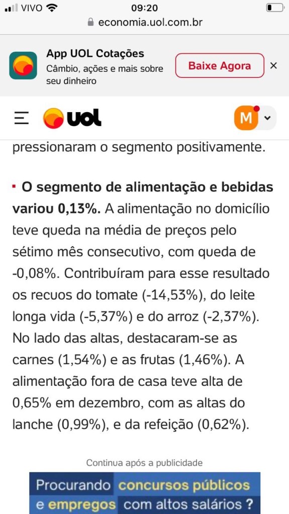 Sobre a queda da inflação para o teto da meta, justificando o sacrifício dos juros altos pelo nosso BC, o que garantiu a queda dos preços dos alimentos e permitiu a recuperação da popularidade do presidente Lula e de seu governo, acertamos.