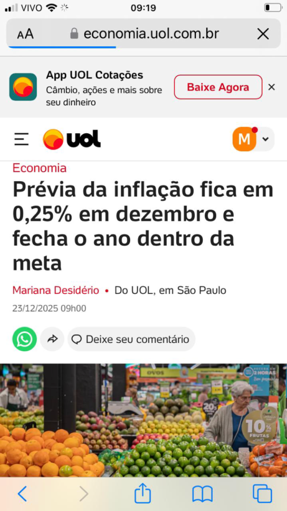 Lembrando que a inflação de alimentos chegou a bater 16,17% anuais e a inflação geral rondava os 10% no início de 2025, o ajuste monetário, que nos custou um trilhão, deu resultado: inflação anual de 4,3% e inflação anual de alimentos em 1,3%