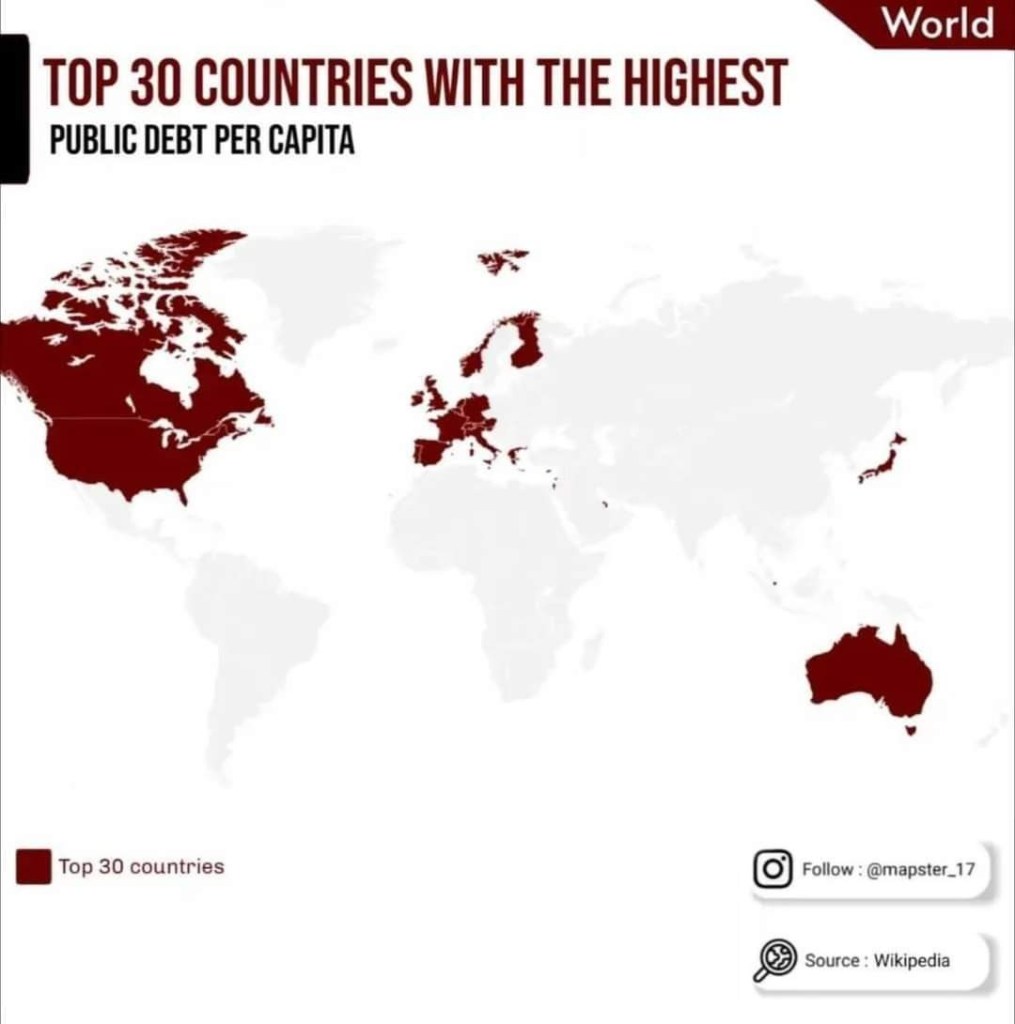 A dívida pública de todos os países do globo quintuplicou em 20 anos: saiu de U$17 trilhões de dólares em 2002 e atingiu U$92 trilhões de dólares em 2022 .