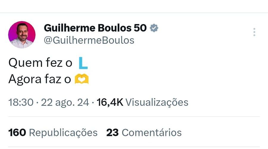 O cenário paulista deu uma tremida, com Boulos dando um tempo e esperando a definição do adversário. Pode ser que precise mais do que corações daqui a pouco, mas faz bem em esperar. Para ele, o coach seria um adversário melhor, porque tem a maior rejeição de todos na disputa.