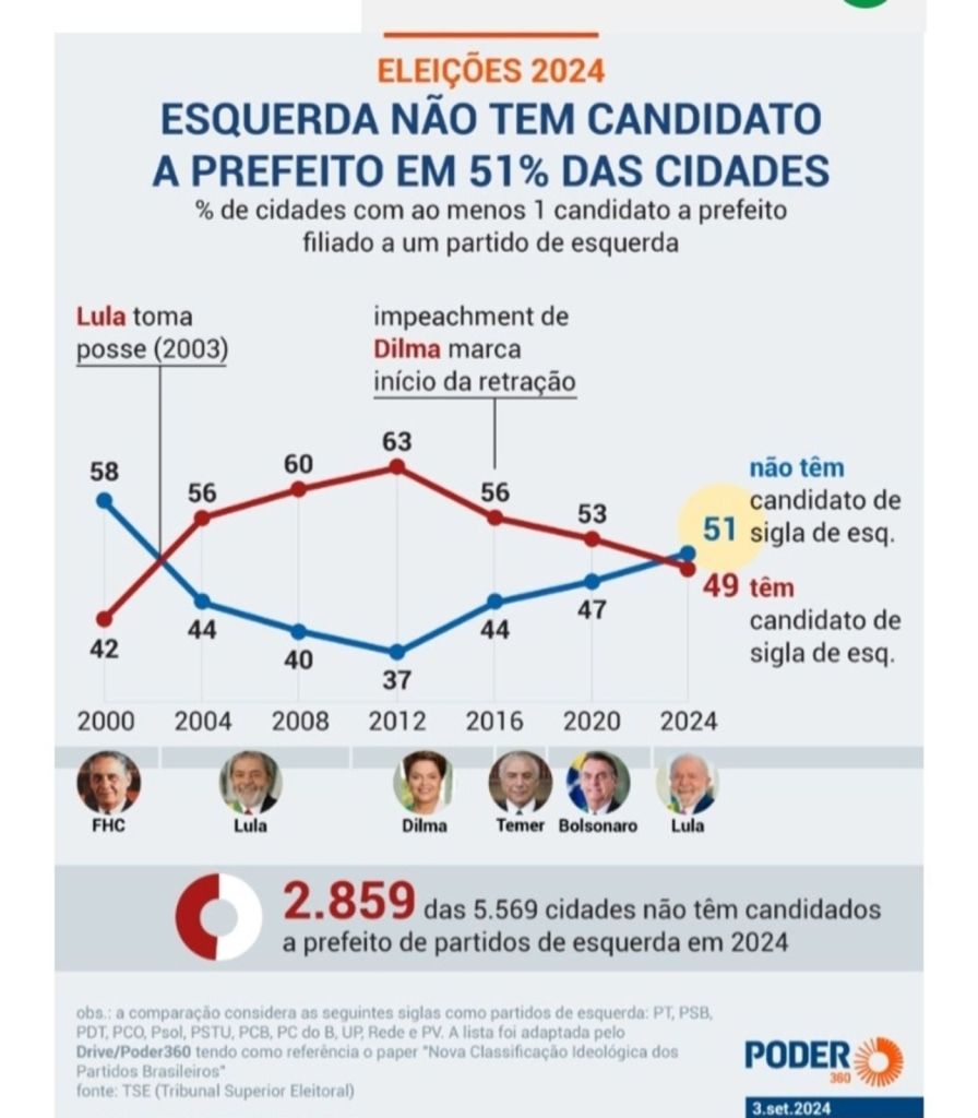 A imagem que ilustra o post não leva em consideração as alianças da esquerda, e elas foram muitas, em parte devido à arrancada inicial modesta. No entanto, a reta final pode trazer surpresas. Mesmo que haja poucas vitórias majoritárias, isso não deve obscurecer a provável recuperação de eleitores e vereadores Brasil afora, que são as verdadeiras bases para construir a vitória presidencial em 2030. Além disso, essas eleições vão calibrar o comportamento político até lá.