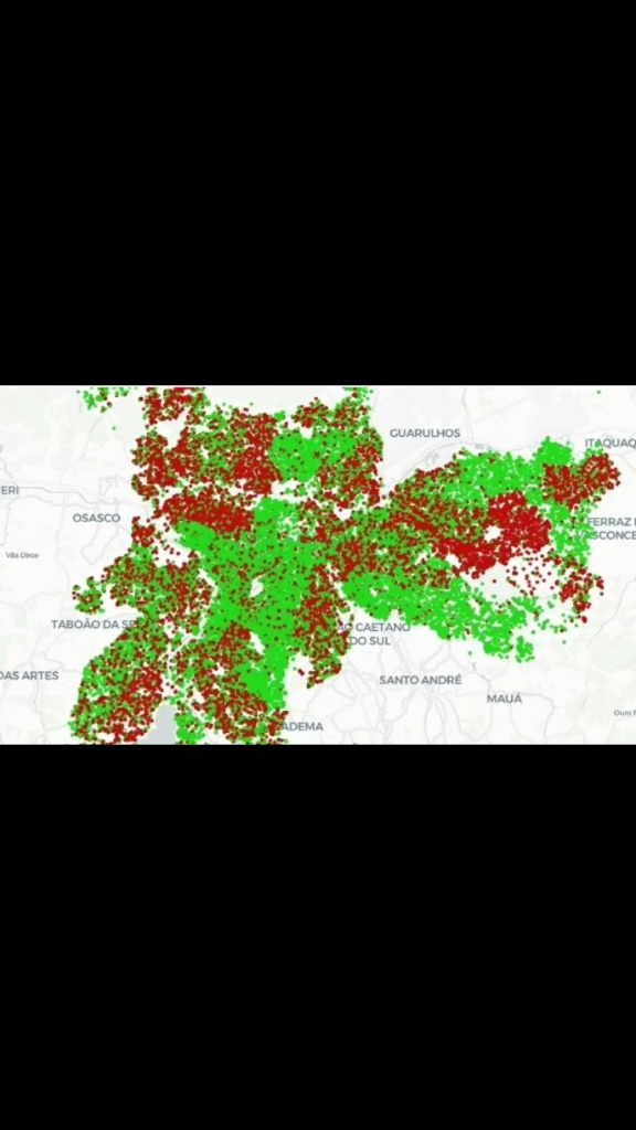 Por fim, a informação de que a poda é responsabilidade da prefeitura, que, além de realizar o serviço para outras finalidades, é quem indica à distribuidora de energia os locais onde o serviço é requisitado pelos moradores do município. Na imagem que ilustra o post, em vermelho, estão os locais onde a poda solicitada não foi realizada. Observe que, nas regiões periféricas de São Paulo, onde a ventania causou mais estragos, a falta de energia ainda não foi resolvida, passadas mais de 74 horas do evento. Não por acaso.