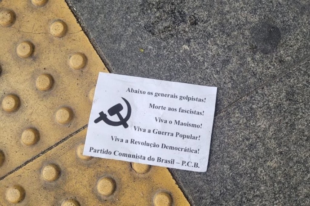 Enquanto os passageiros aguardavam na fila, dois homens deixaram duas sacolas na plataforma. Segundos depois, uma delas explodiu, espalhando dezenas de panfletos.