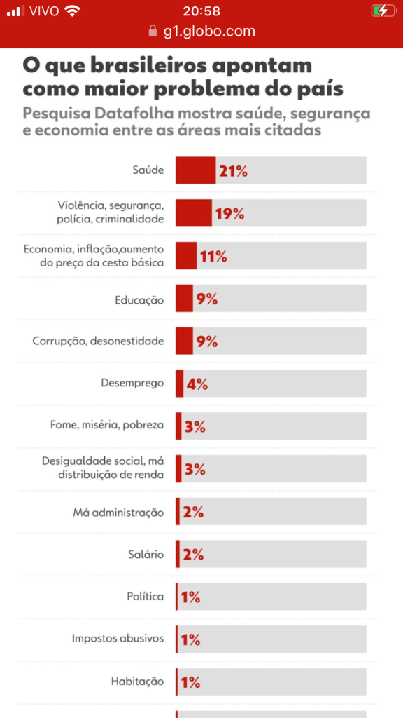 Um número de 19% de destaque para segurança me parece pra lá de razoável, perdendo para saúde, com 21%.