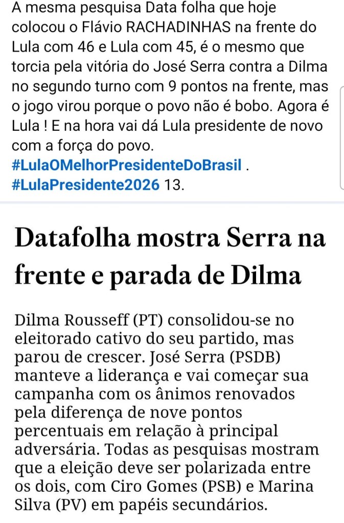 Exemplos não faltam. Esse da Dilma, que ilustra o post, eu não me lembrava, mas tenho vívida lembrança da posição do Bolsonaro no início de 2021, com aprovação pífia e 20 pontos atrás do Lula nas pesquisas — o final todos nós vimos.