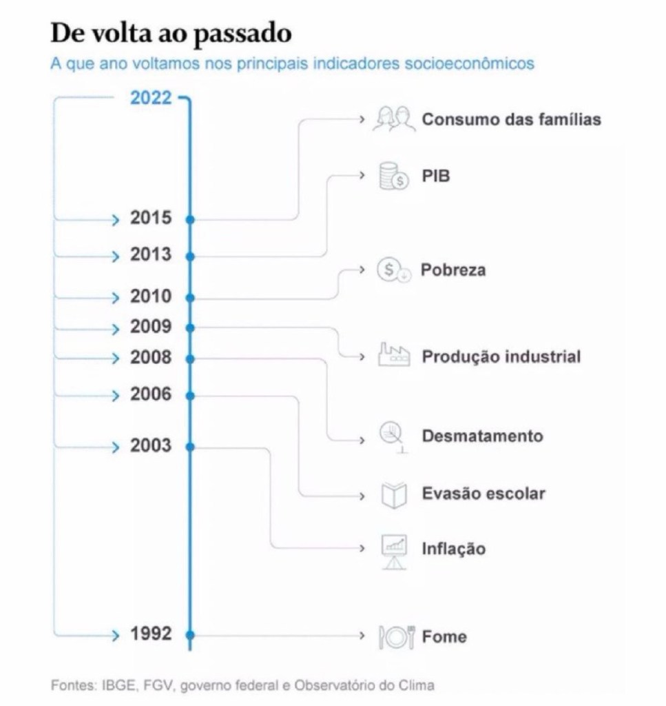 Vale lembrar: era assim que estava o Brasil em 2022, último do governo Bolsonaro — o ano indica o retrocesso: